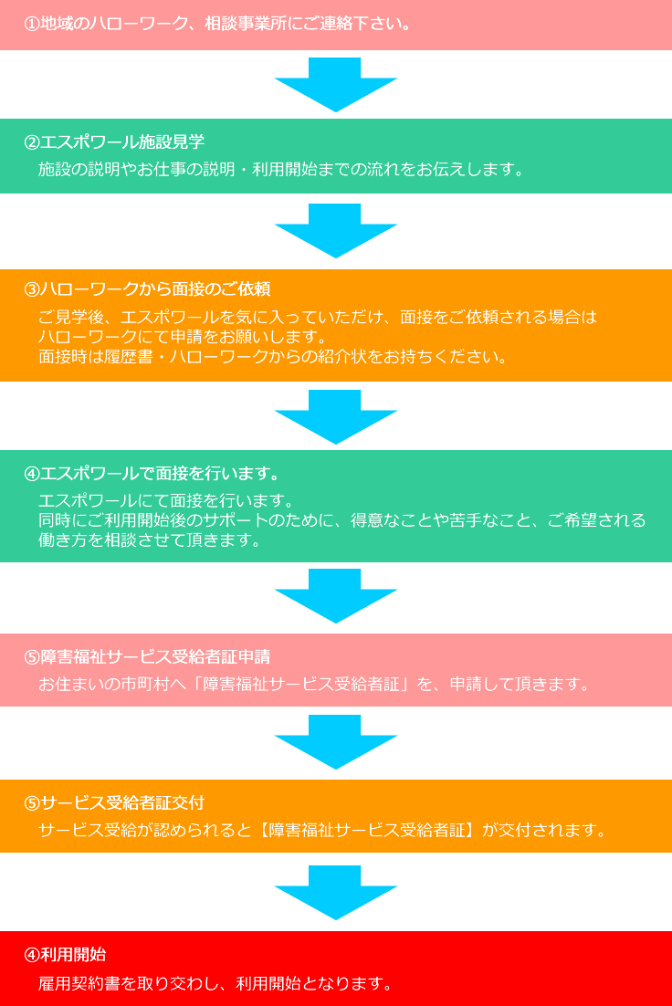 ご利用対象者は、障害を有している方で、一般就労が困難ですが、雇用契約に基づき継続に就労する事が可能な方、就労移行支援事業を利用したが企業の雇用に結びつかなかった方などです。